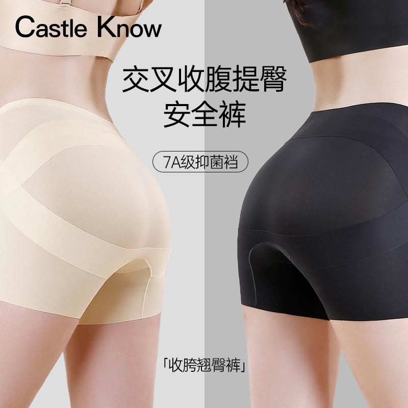 CastleKnow Belly Tightening Hip Lift Boxer Panties Women's Seamless Ice Silk Summer Small Belly Tightening Anti-Exposure Safety Pants