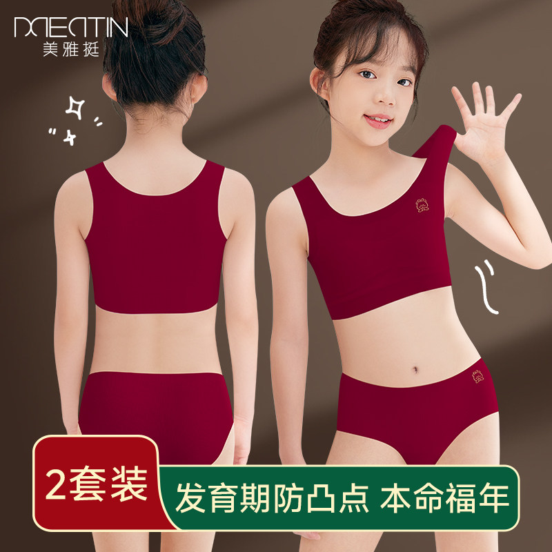 2026 Year of the Horse Children's Natal Year Underwear Panty Set 12-Year-Old Girl's Red Vest Developmental Bra