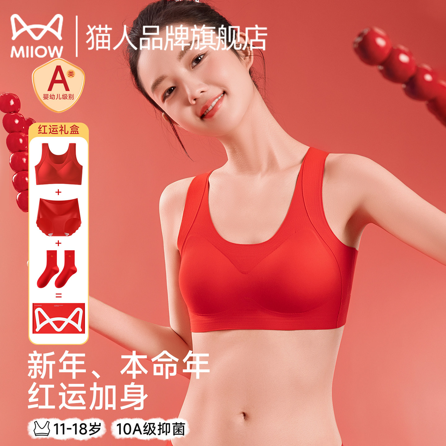 Cat man girl underwear set, natal year, New Year's good luck, traceless comfort, red product developmental period special underwear box