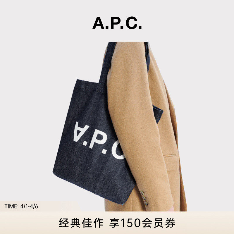 【Brand Classic】A.P.C.TOTE Unisex Commuter Large Capacity Alphabet Denim Tote Bag