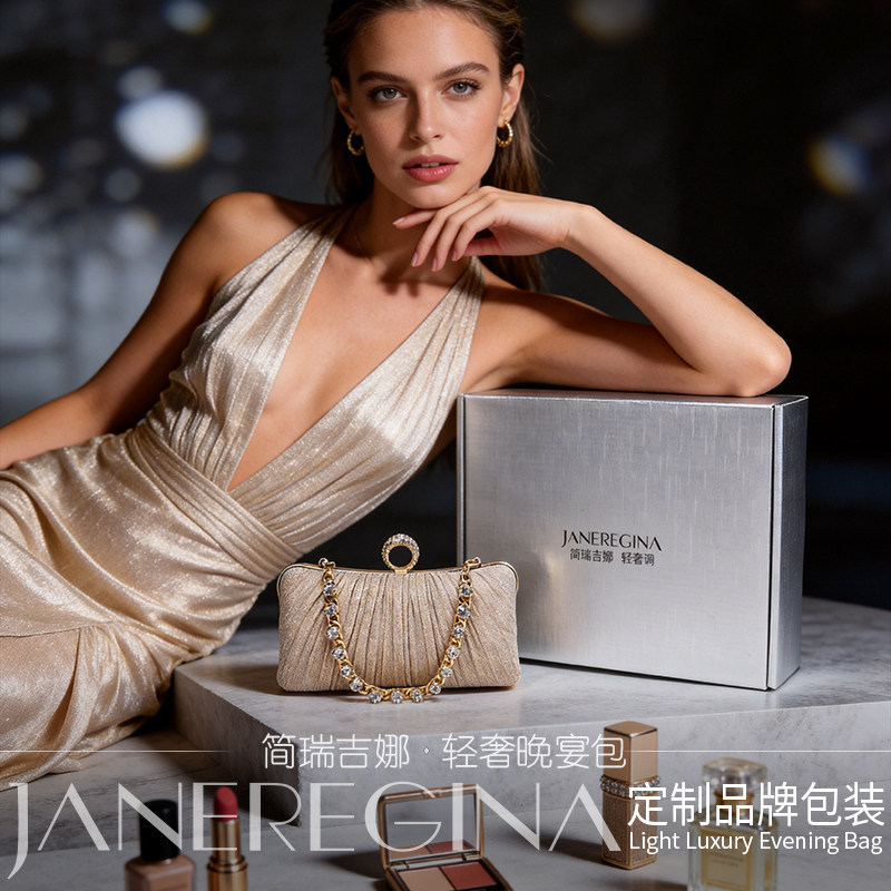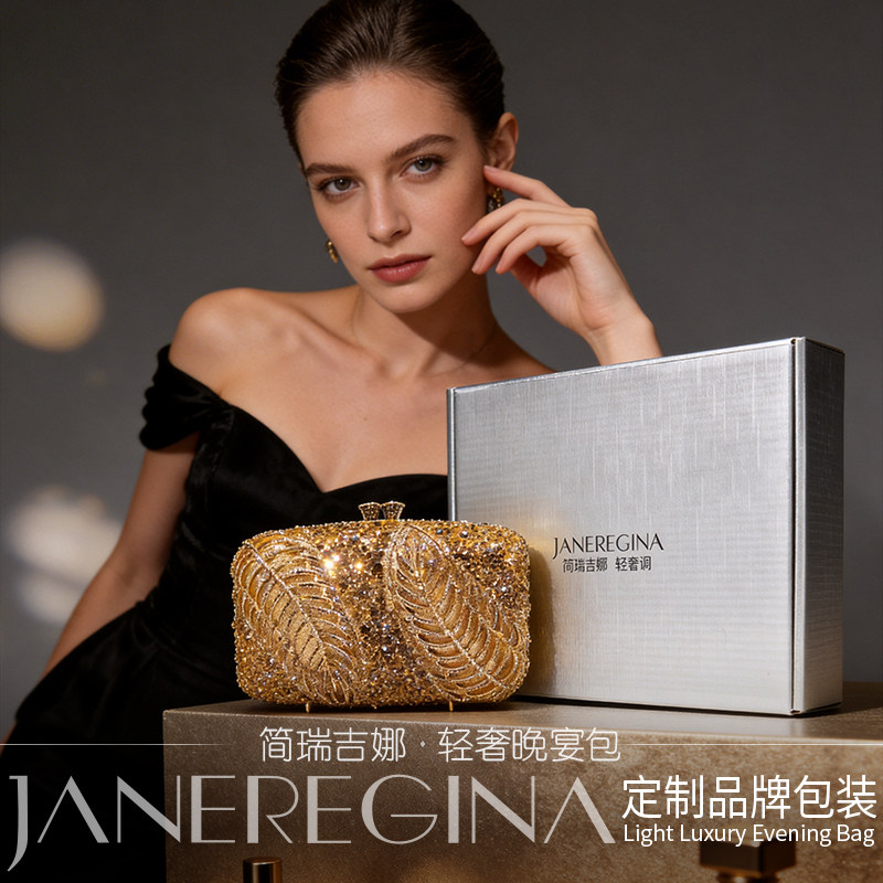 Haute couture dress with dinner bag clutch bag women's light luxury wedding cheongsam bag gold rhinestone banquet grab bag