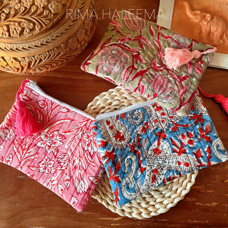Imported hand-printed and dyed patterned cotton mini cloth bag coin purse cosmetic bag card bag storage bag handbag