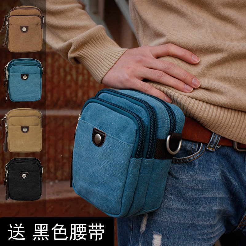 Wear belt, waist bag, washed canvas, multi-functional large-capacity vertical mobile phone bag, men's sports women's one-shoulder crossbody