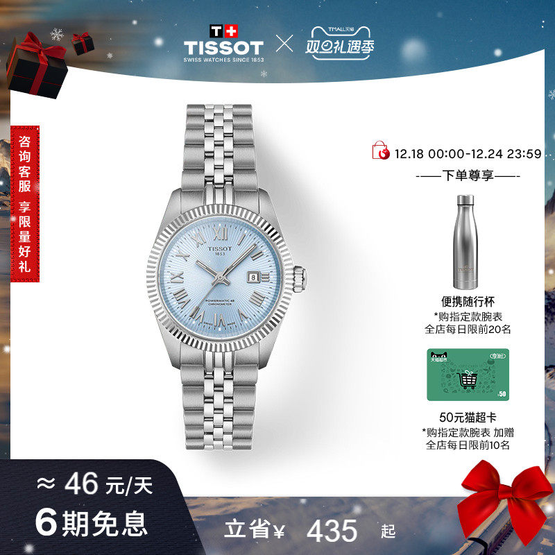 【New】Tissot official treasure ring series chronometer certified mechanical women's watch
