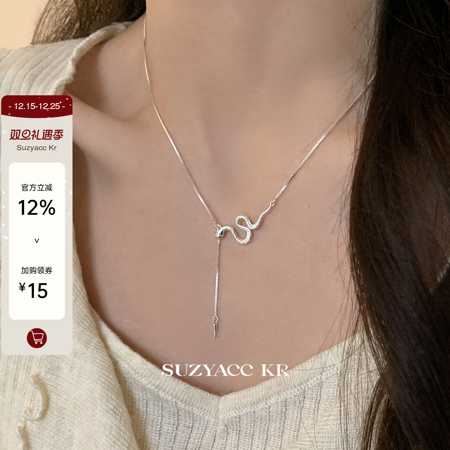 suzyacc kr snake year limited shining tassel sterling silver zodiac snake spirit snake collarbone chain niche design necklace for women