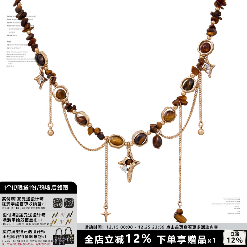 Autumn and winter Maillard beaded tiger's eye pendant necklace women's retro temperament sweater chain light luxury luxury accessories