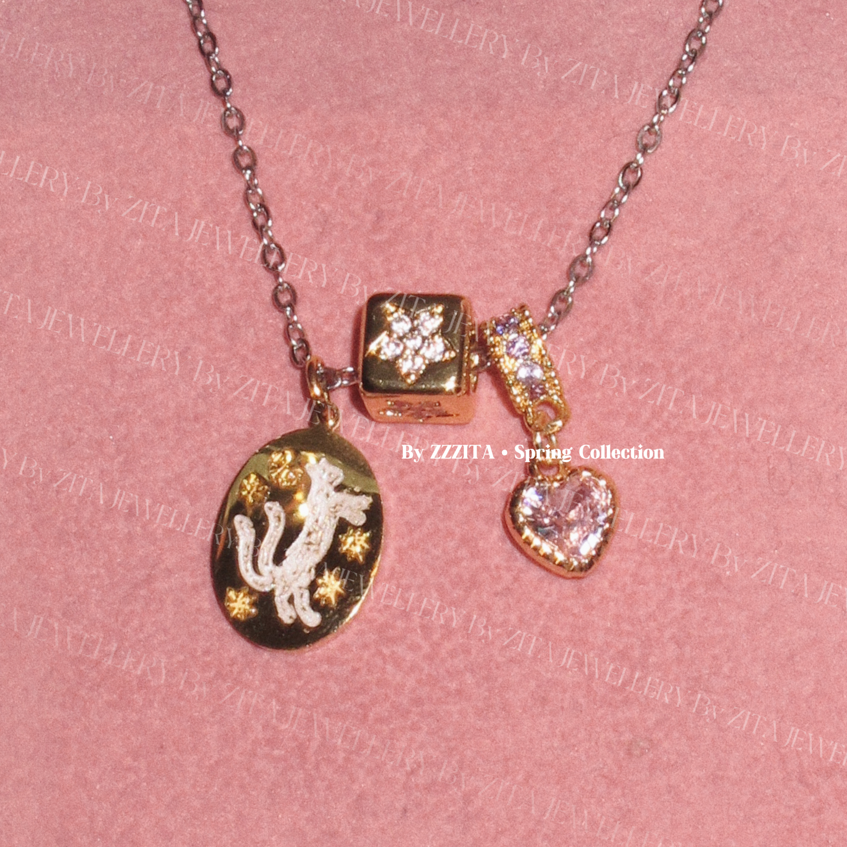 ZZZITA cat patron saint cat person ~ hand-painted oil cat pentagram love ins necklace