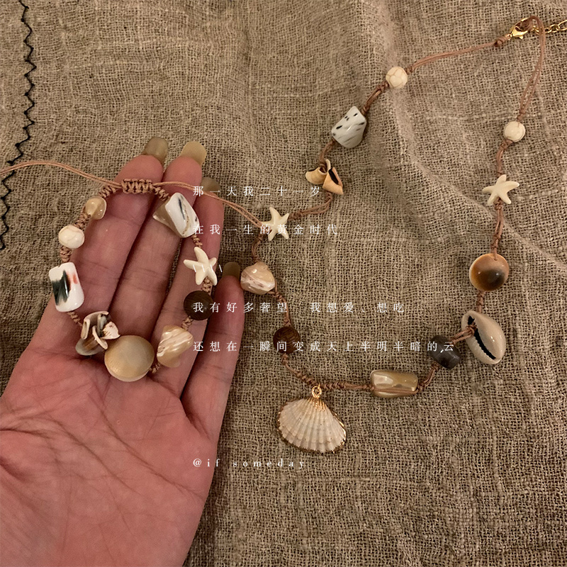 Handmade natural stone shell necklace women's summer seaside resort style personalized accessory collarbone chain braided neck necklace