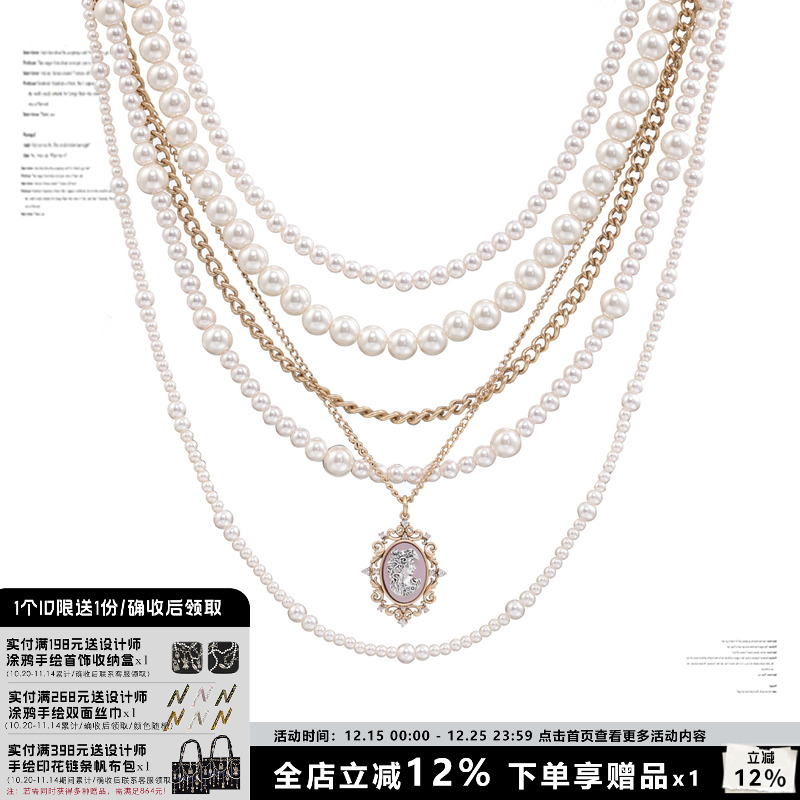 [Star Same Style] Retro American Soprano Pearl Necklace Women's Multi-layered Belt Light Luxury Small Fragrance Necklace