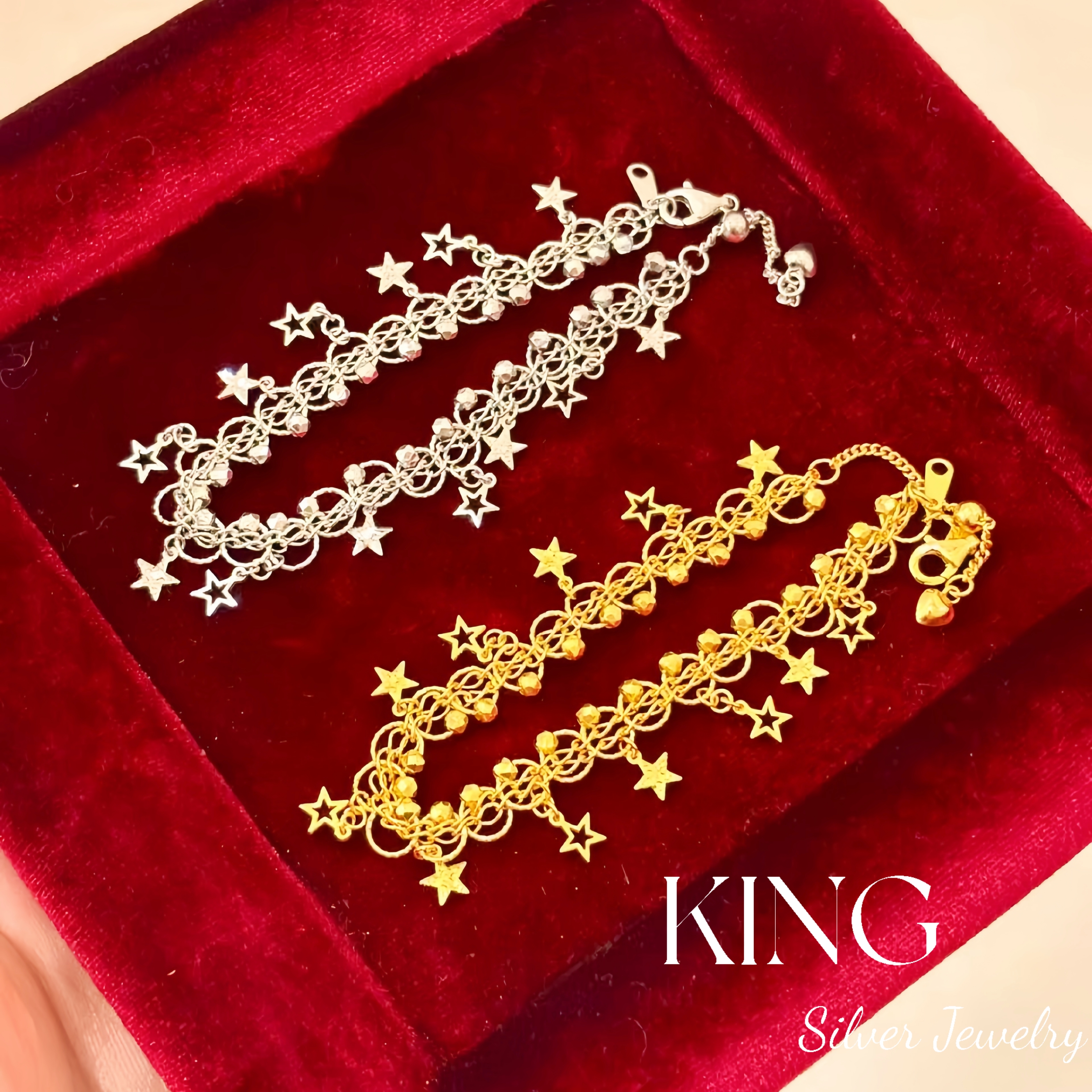 Starlight Feast | King silver jewelry cut-out star fringe lace vintage light luxury fashion sterling silver bracelet