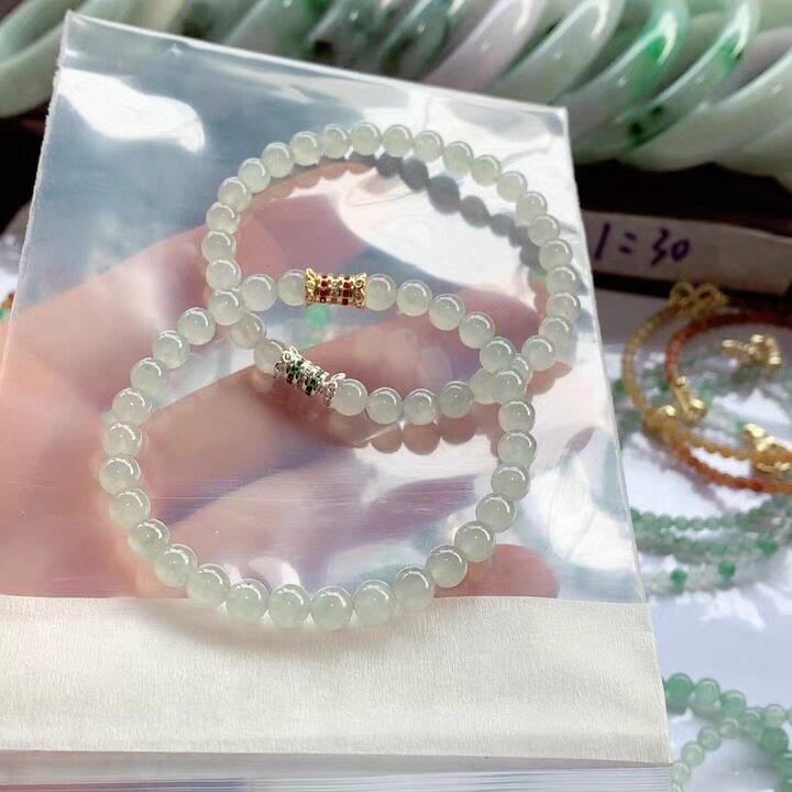 Burmese Jade White Ice Bracelet Card 6.3