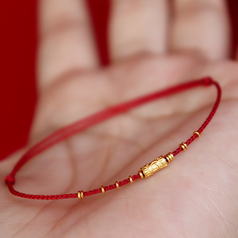 999 pure gold sunflower gold ring red bracelet natal year adjustable gold tube ultra-thin bracelet men's and women's foot ropes
