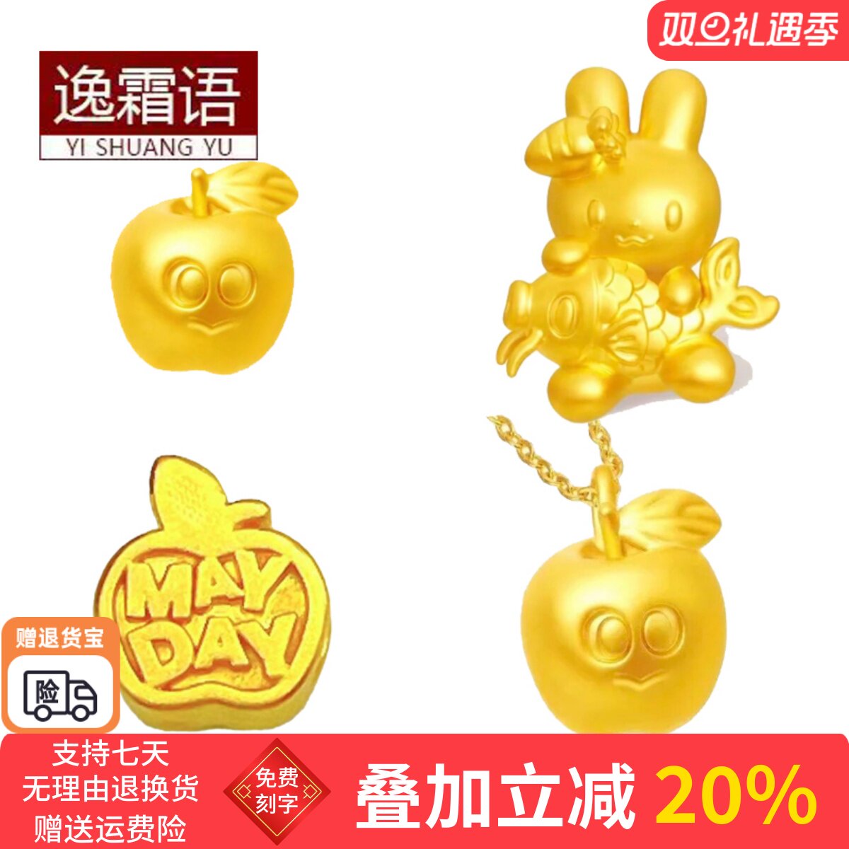 999 pure gold enamel color double-sided peach blossom matching card 2 gold bean bean bracelet C8103