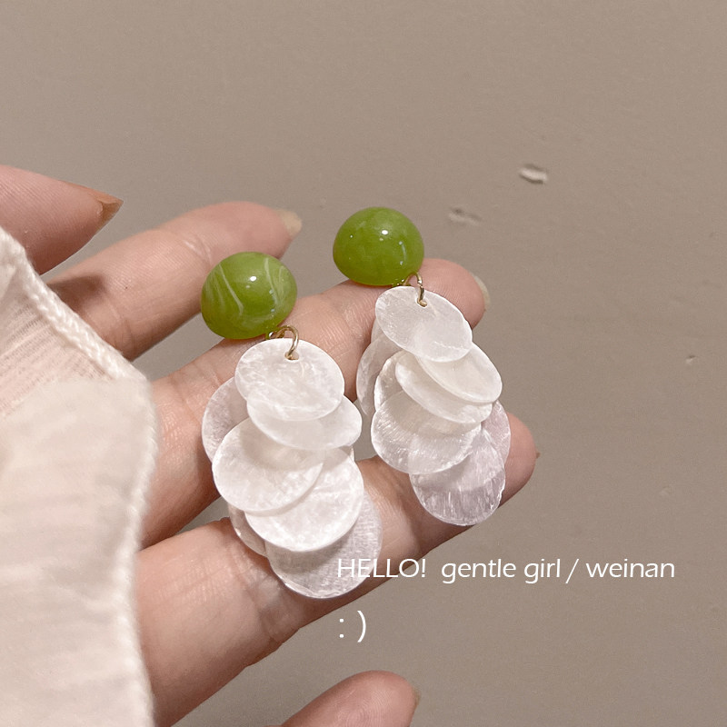 Avocado green earrings women's shell earrings for summer, earrings, 2026 new Internet celebrity stud earrings