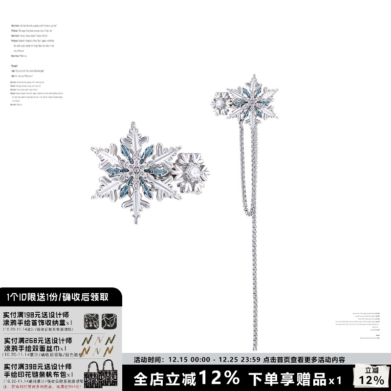 Shining zirconium snowflake earrings, women's light luxury, exquisite and compact small stud earrings, unique and beautiful earrings, no ear holes, ear clips