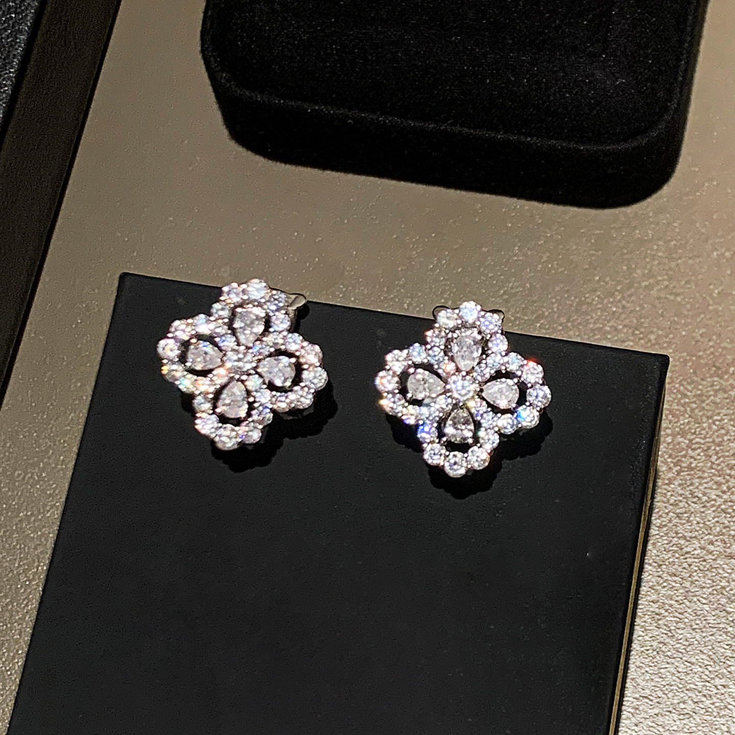 999 sterling silver French pop giant good-looking silver diamond four-leaf clover stud earrings women's high-end light luxury earrings earrings