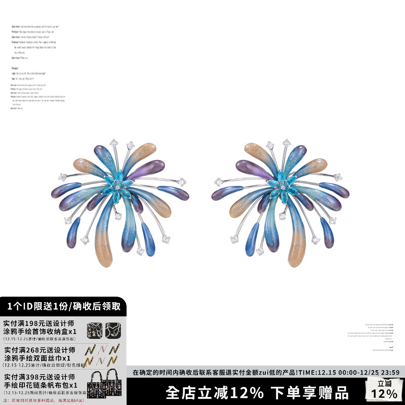 SUMIYAKI Smoke Mars Hour Earrings Pure Handmade Fireworks Stud Earrings Niche Earrings Ear Clips No Ear Hole Girl Gifts