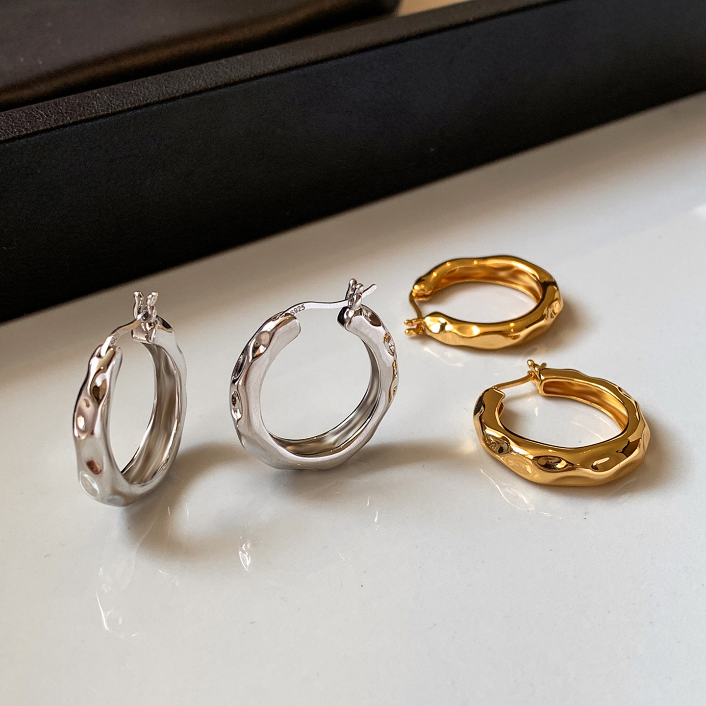 Gold broken silver large hoop earrings, women's light luxury high-end autumn and winter stud earrings, 2025 new explosive plain hoop earrings