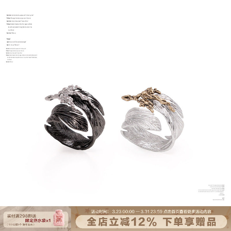 [Star Same Style] Feather series niche high-end ring women's liquid metal light luxury ring couple gift