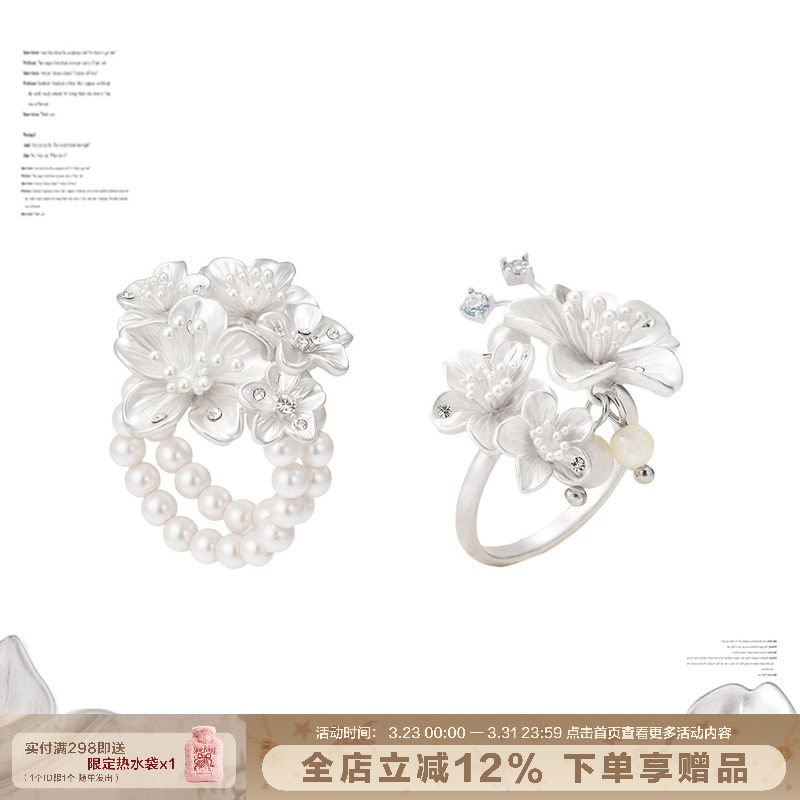 【Star Same】SUMIYAKI Night Cherry Blossom Series Cherry Blossom Multi-layer Ring Flower Cluster Design High-end Sense Ring