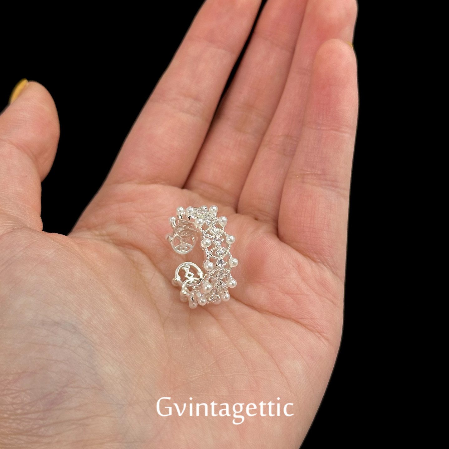 Vintage Vintage Lace frills pearl ring