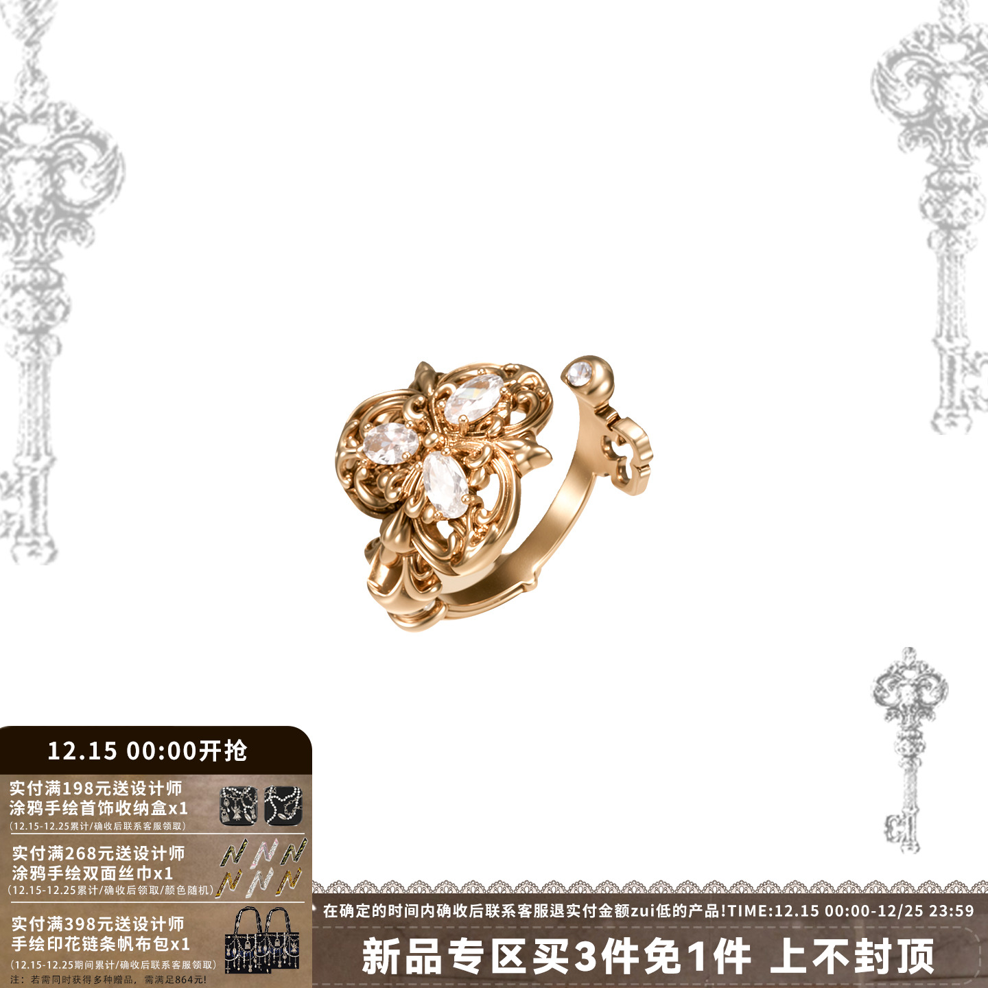 SUMIYAKI love lock cylinder series vintage key premium opening ring woman