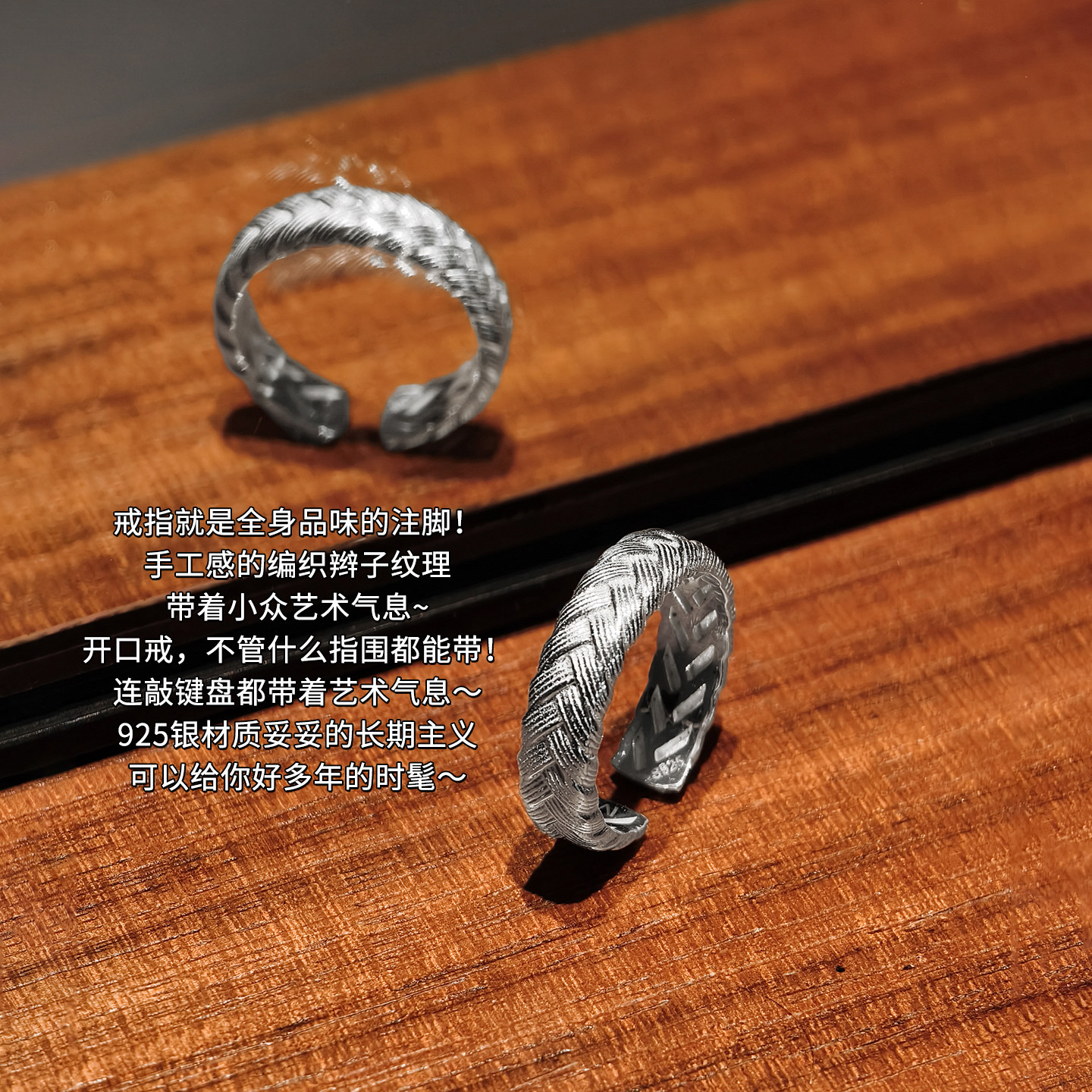 Meiyang [in stock] braid ring private collection design 925 silver woven texture opening ring - Friday