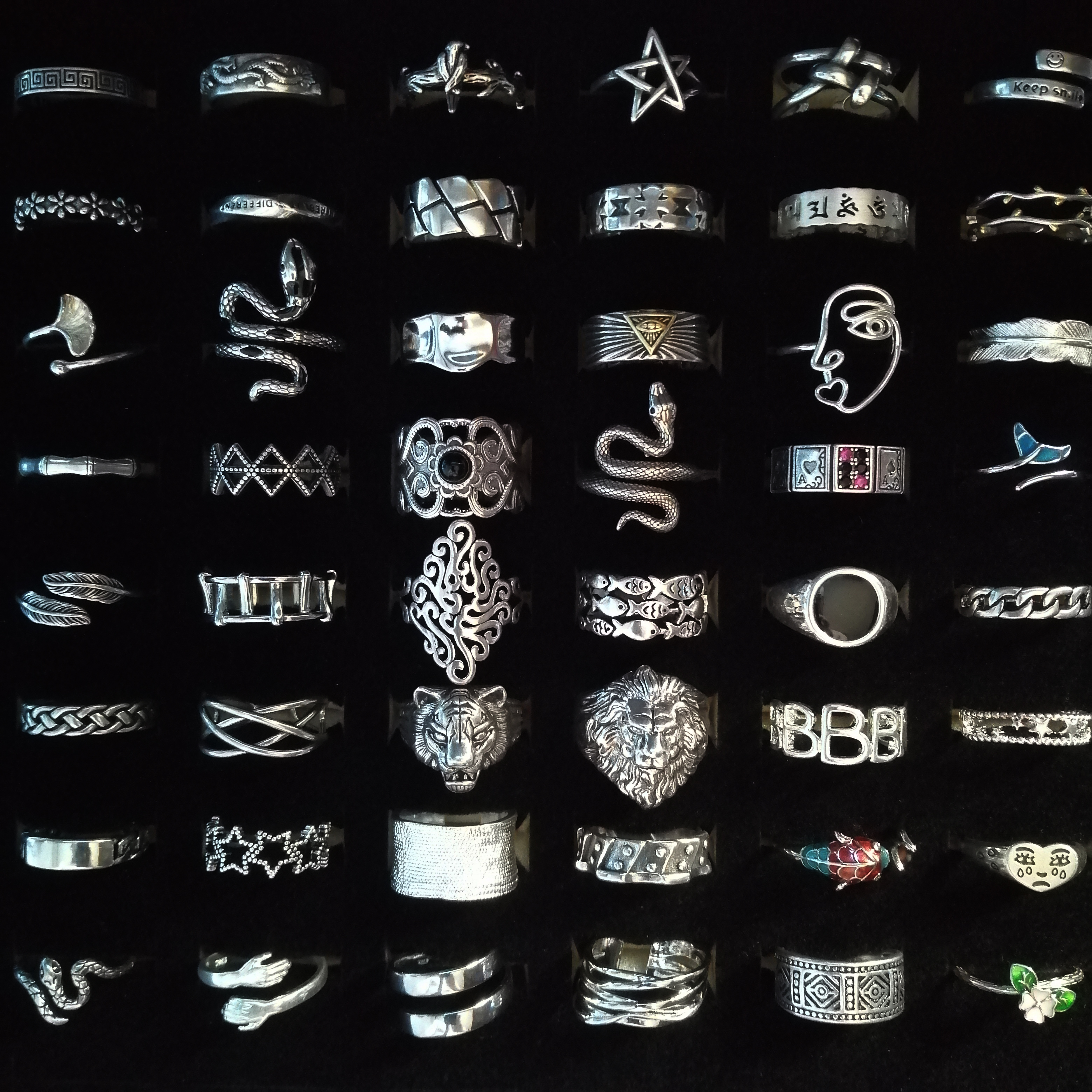 Retro distressed without fading, fashion ethnic style, men's and women's niche personality, Internet celebrity characteristics, open silver ring ring, free shipping