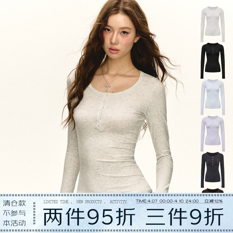 Ariseism American vintage design Henry neck long sleeve T-shirt women's spring hot girl slim base top