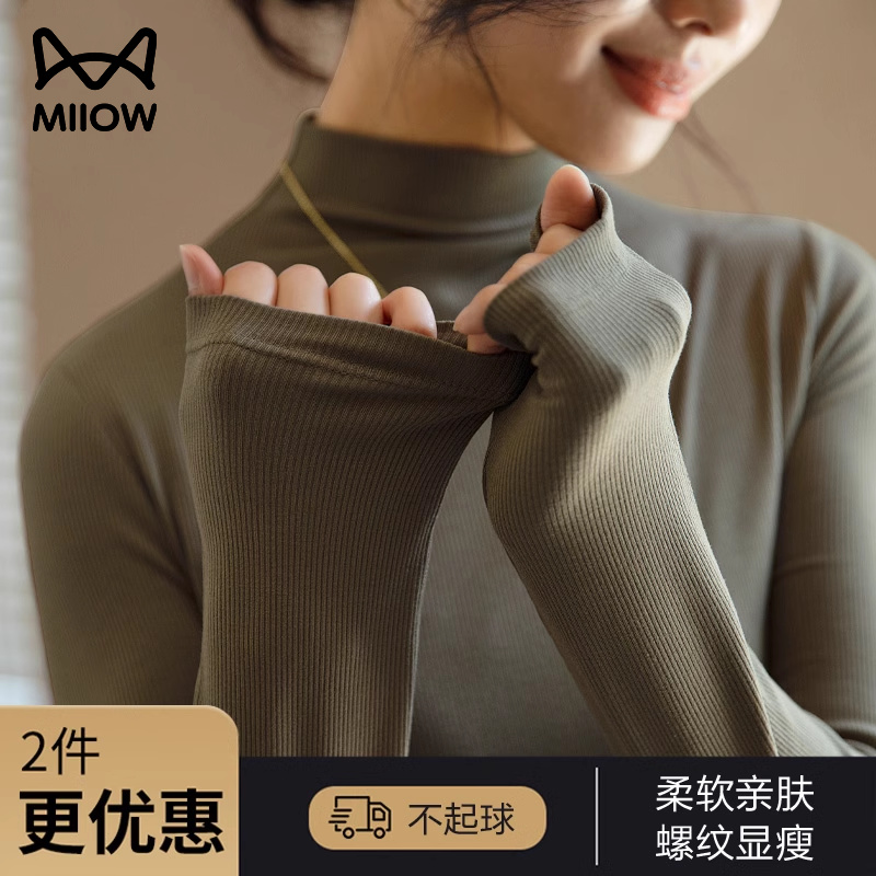 Cat Man Semi-Turtleneck Base Jacket Women's 2025 New Autumn and Winter Black Modal can be worn with a thin long-sleeved top outside