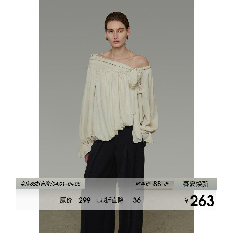 UNSPOKEN French Irregular Slinger Shirt Women's Spring 2026 New Design Lace-up Off-the-Shoulder Top
