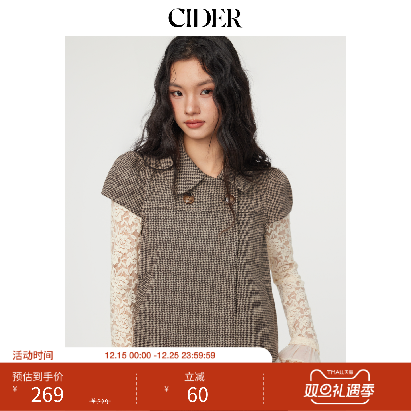 CIDER Peter Pan Collar Plaid Shirt Vintage Lapel Check Casual Short Sleeve Top 114740919