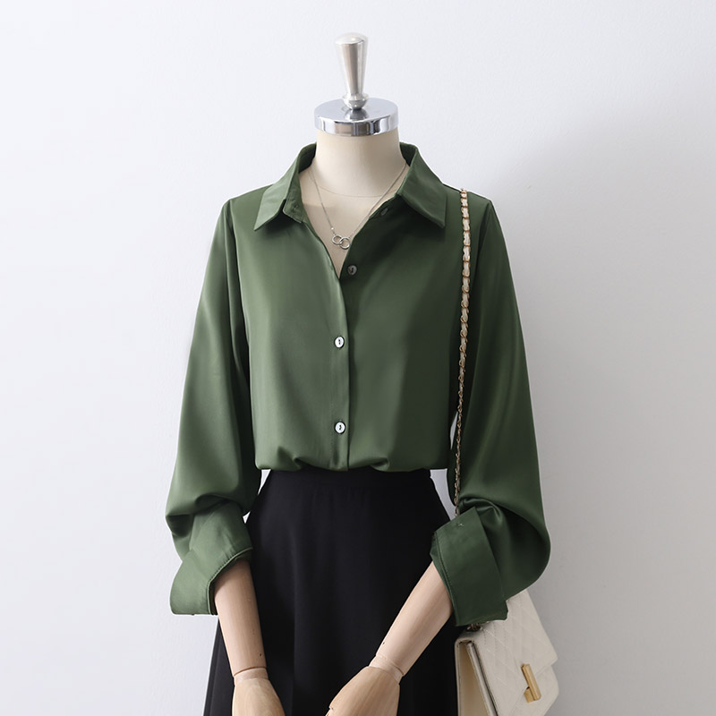 Retro Hong Kong satin high-end lapel shirt women's 2025 spring and autumn professional commuting draped long-sleeved chic top