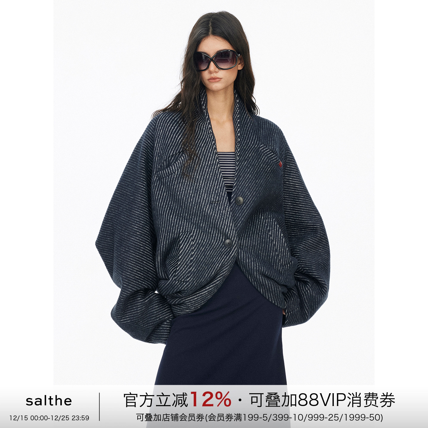 SALTHe salt tea * Prussian blue small fragrance wool loose dropped shoulder bat sleeve woolen jacket winter new style