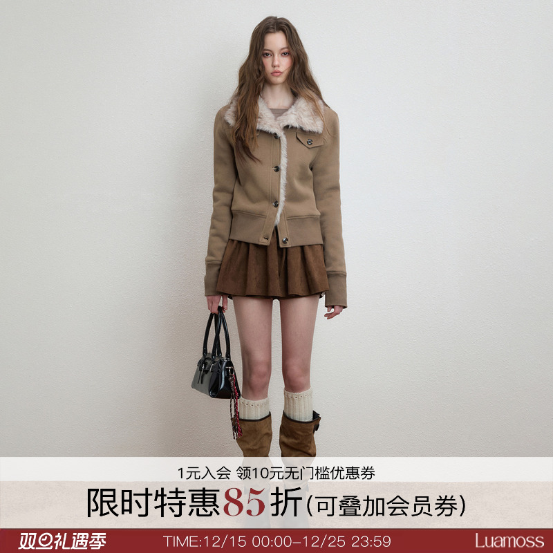Kurosawa Genqi slightly chubby MM2025 autumn/winter new casual American thickened jacket top short fur collar jacket for women