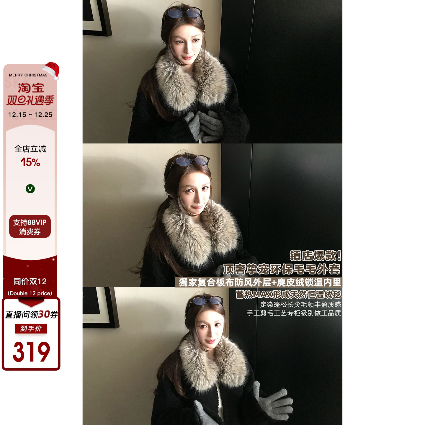 Skk Store Hokkaido Love Song Suede fleece lining fixed dyed fur collar composite eco-friendly grain wool coat