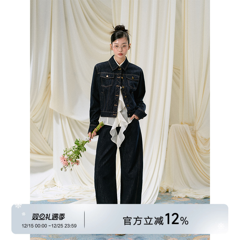 LaluneDuCiel Blue American Vintage Denim Jacket Fall & Winter Casual Jacket Loose Temperament Suit for Women