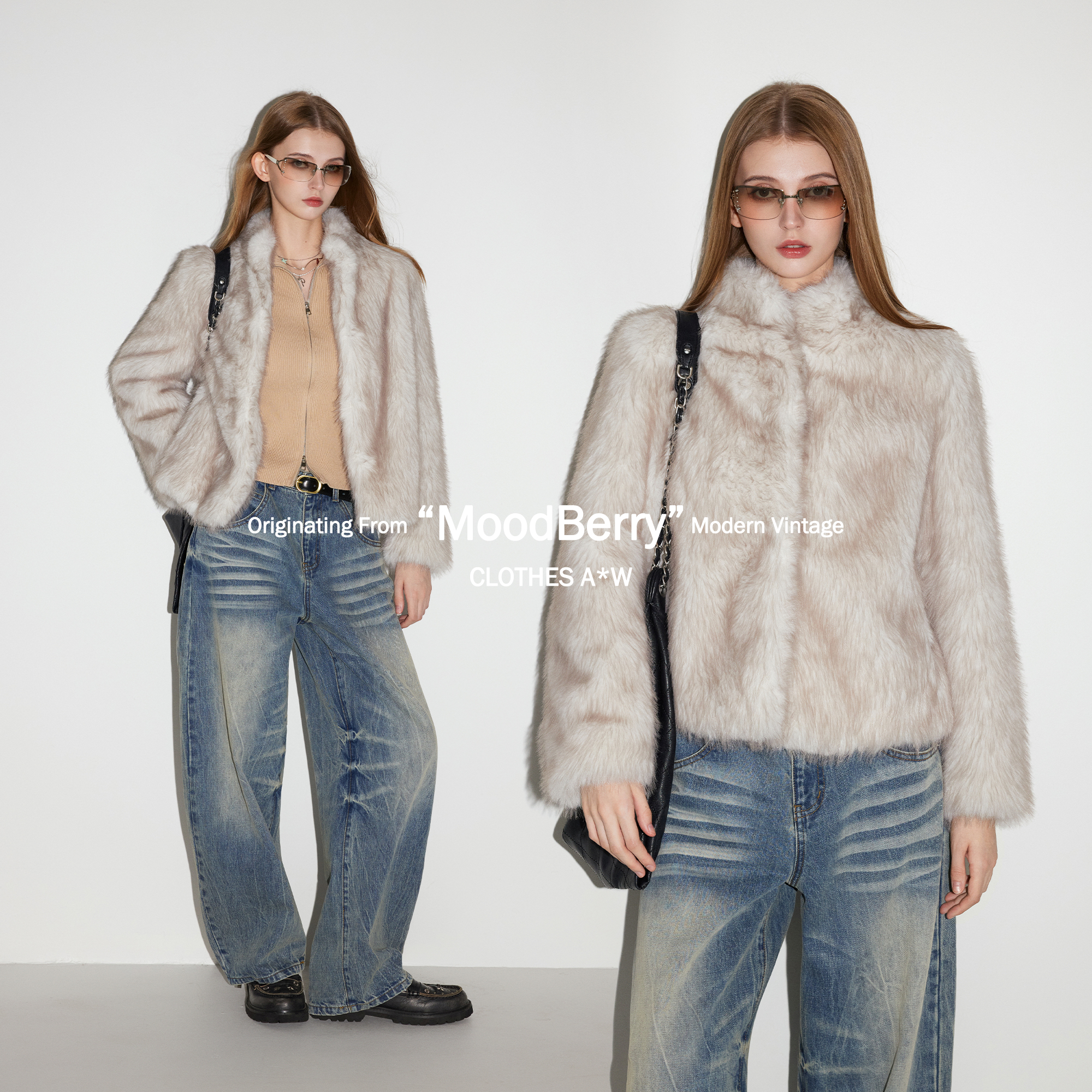 MoodBerry American Vintage Lazy Casual Style Short Eco-Friendly Fur Jacket Women's Winter Versatile Fleece Top