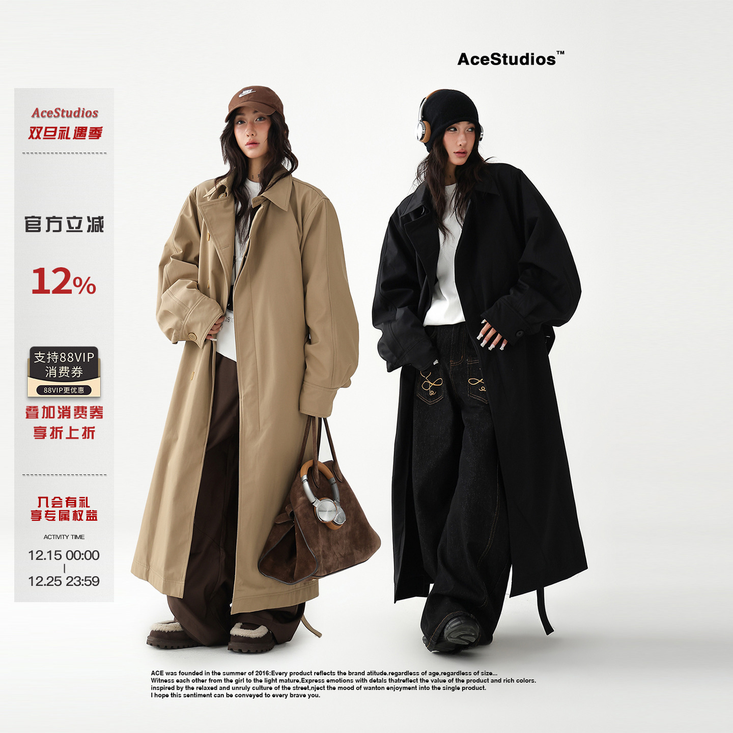 AceStudios British Intelligent Silhouette Loose Long Coat Trench Coat Women's Single-Breasted Light Brown Jacket Trendy