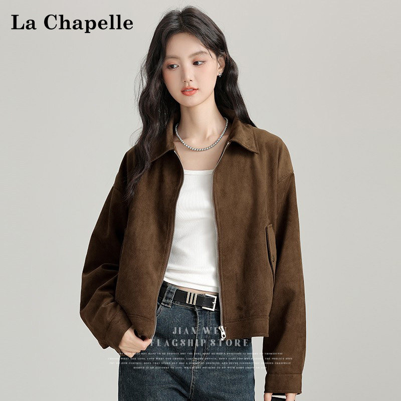 La Chapelle Brown Vintage Suede Lapel Jacket Women's Spring 2026 Zippered Short Maillard Jacket