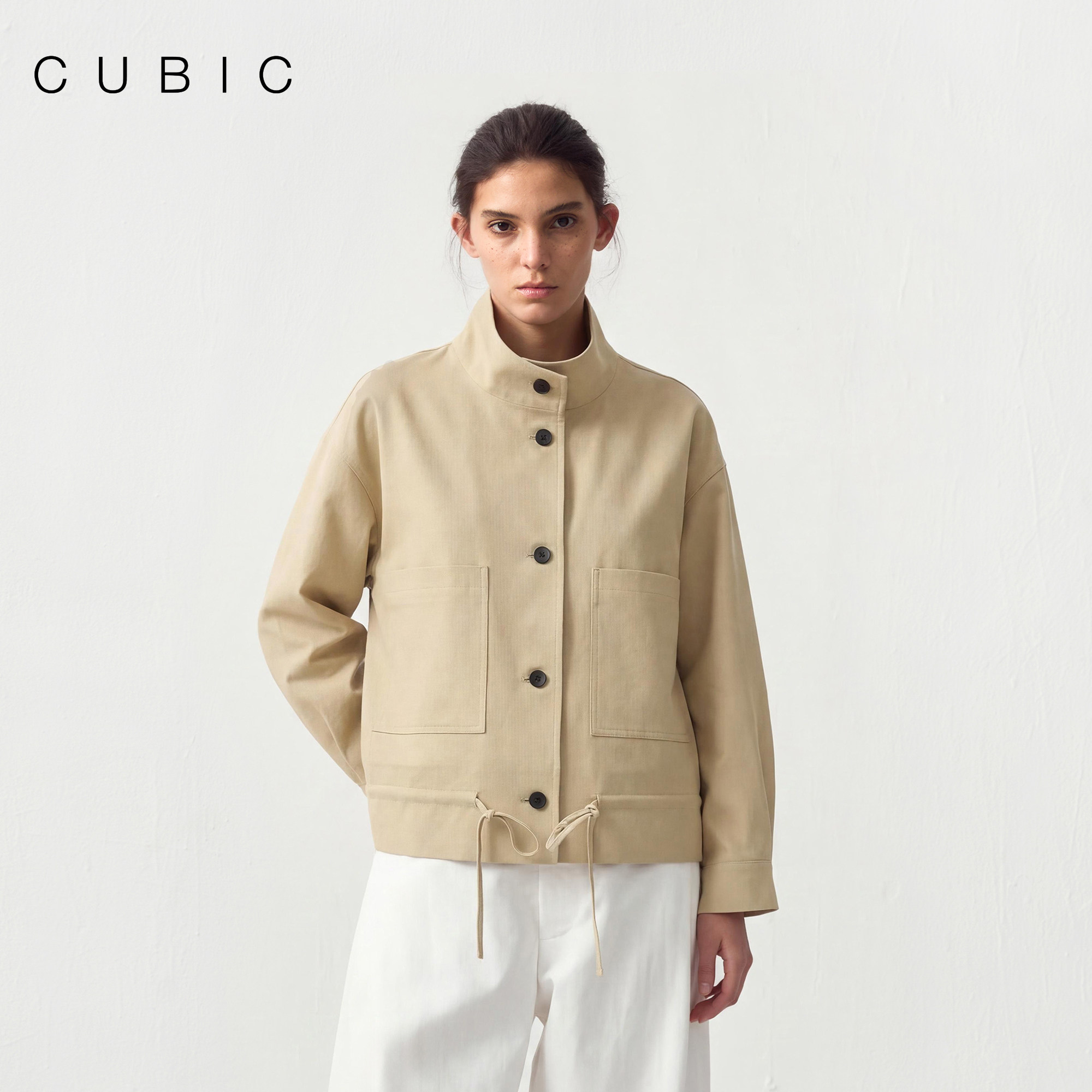 CUBIC classic British-style versatile stand-up collar loose H-shaped silhouette spring drawstring waist short coat