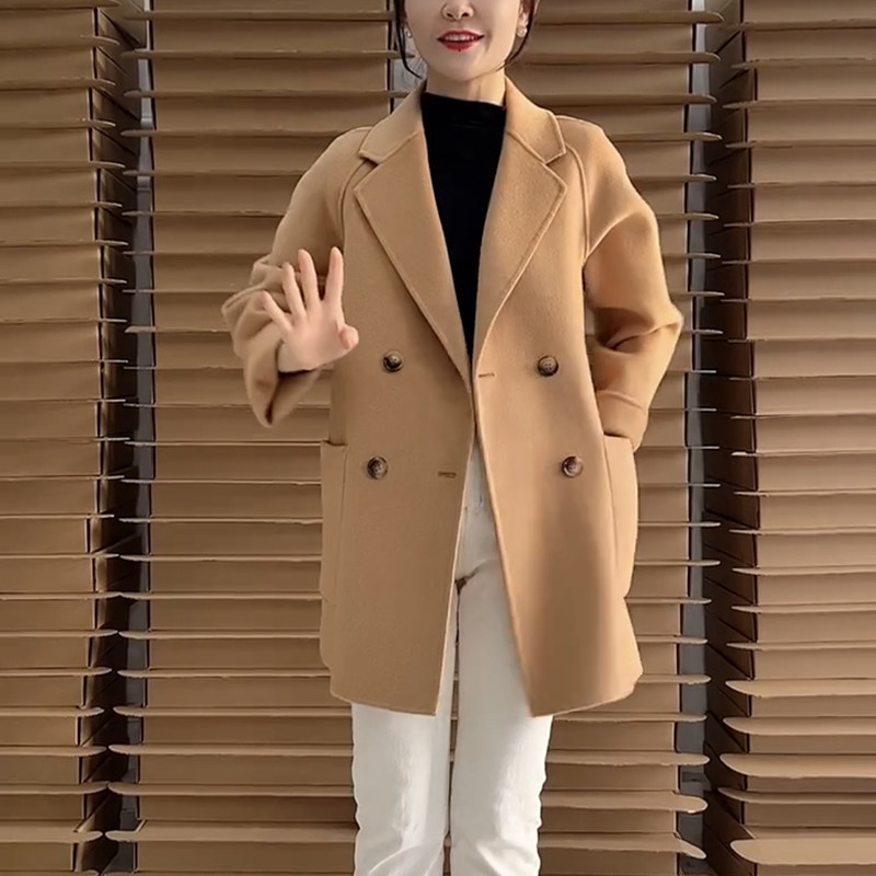 Reversible cashmere coat, women's small autumn and winter high-end short loose wool suit woolen jacket