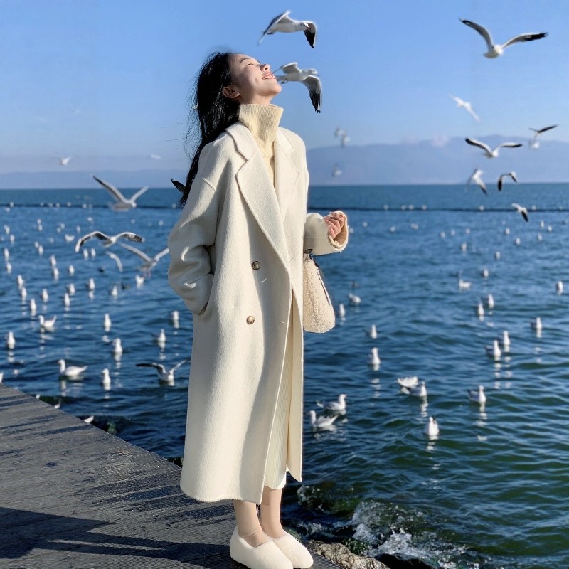 Maillard brown autumn/winter new reversible cashmere coat women's mid-length Korean loose high-end wool jacket