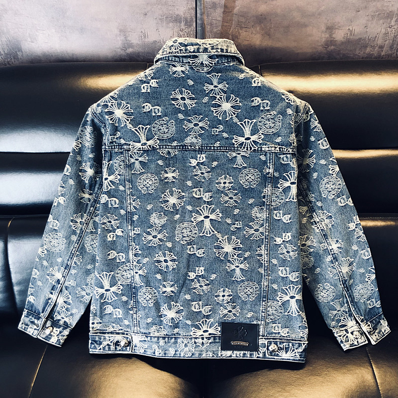 Loose high-end quality denim jacket men's spring and autumn European and American trendy brand full-body print design ruffian jacket clothes
