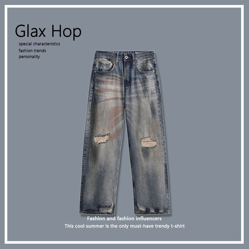 Glax Hop Official Brand Recommendation | Vintage Dirty Wash | Men's and women's high-street trendy niche casual jeans