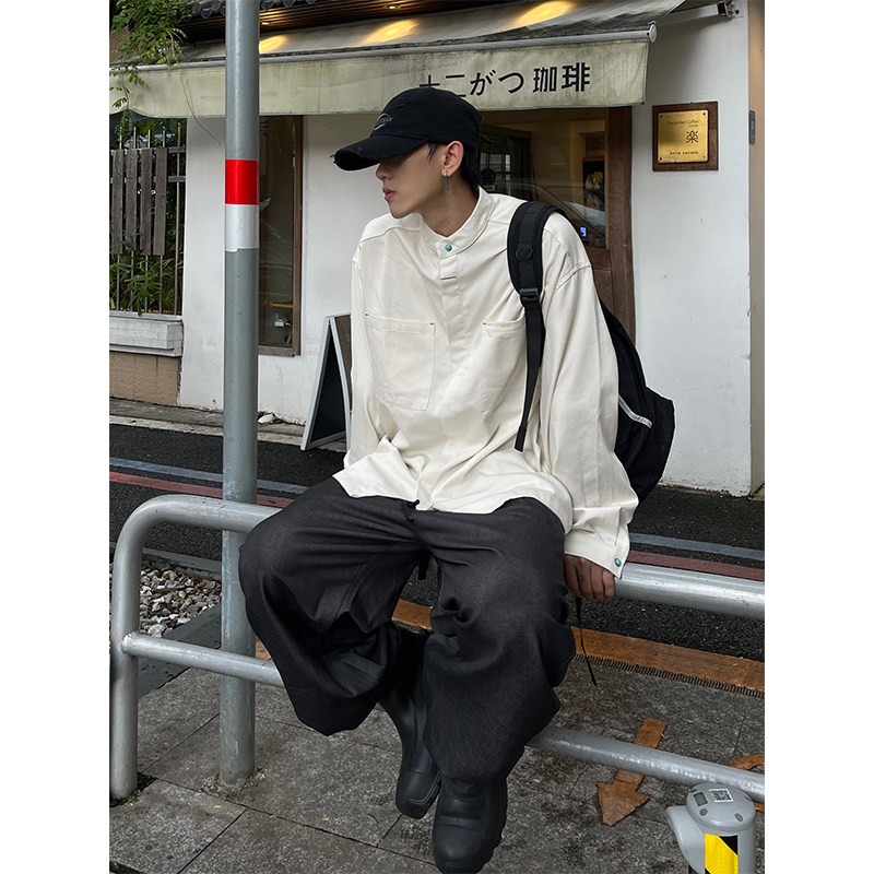 Escape from Guangfu South Lyocell blended stand-up collar long-sleeved shirt men's and women's trendy brand retro heavy relaxation shirt