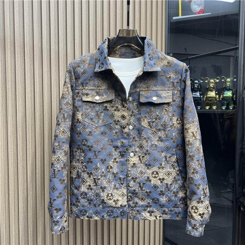 Trendy brand fashion personalized denim lapel jacket jacket casual versatile jacquard top autumn new men's style