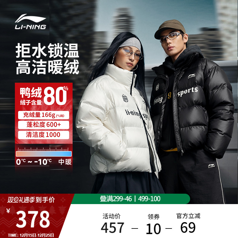 Li Ning hot pot down jacket丨Men's winter new couple stand-up collar jacket duck down cropped top warm clothes women