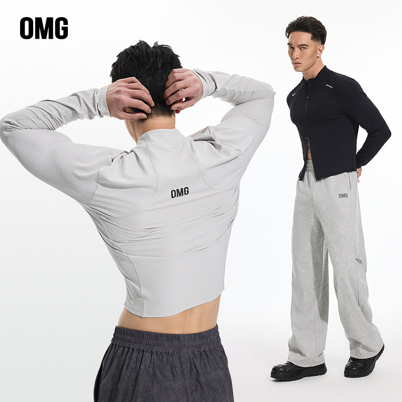 OMG Sports Curved Split Waffle High Stretch Tight Jacket Men's Moisture Absorption Quick Dry Sports Training Gym Clothes