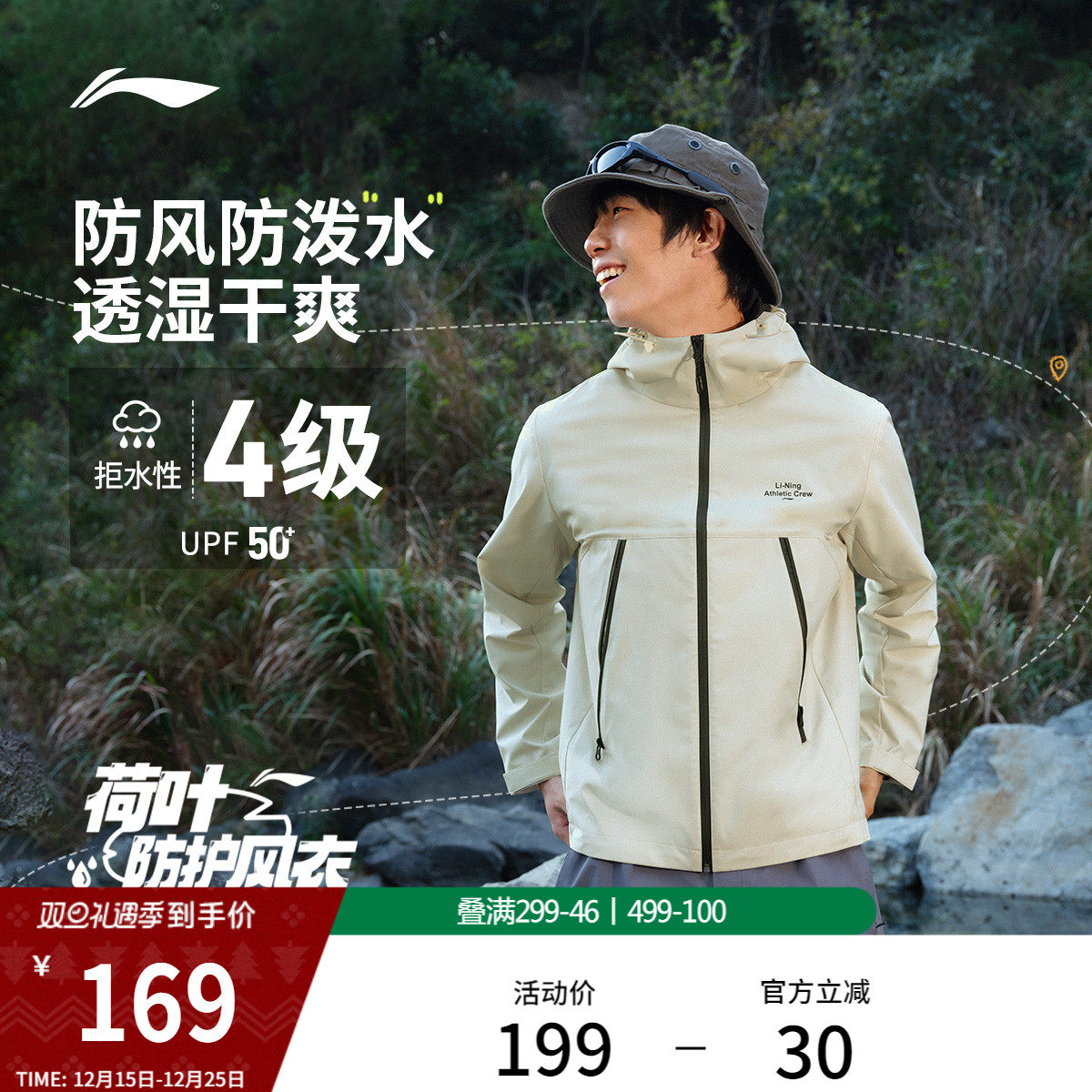 Li Ning softshell jacket men's autumn and winter new hooded jacket outdoor mountaineering windproof splash water jacket sports trench coat